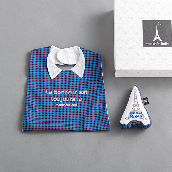 ギフト特集お祝い・内祝いご出産のお祝い/[モンシェリ べべ] 【ギフトボックス付】 襟付きスタイ&ラトルセット(ブルー系)
