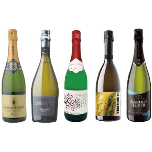 ネットデパートフード酒類・飲料ワイン/[ワインショップニコラ] フランス・イタリア・スペイン周遊 スパークリング5本セット